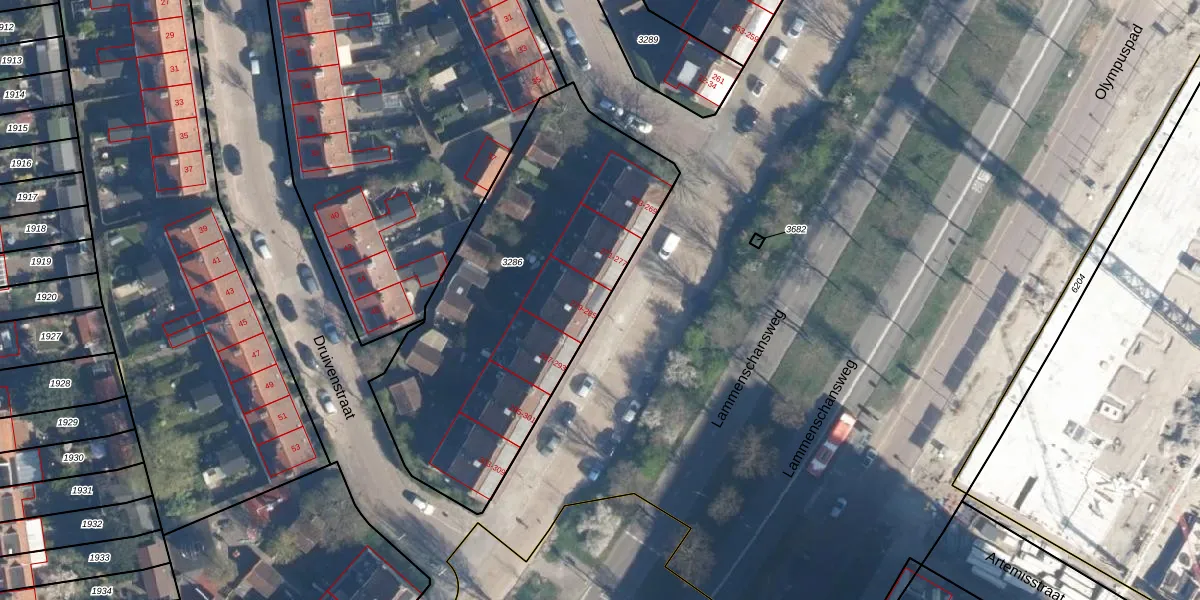 Het perceel waarop Lammenschansweg 279 staat heeft een oppervlakte van 1685 m². Dit is een zeer groot perceel. De perceeloppervlakte wordt geregistreerd door het Kadaster. Gedetailleerde informatie over de maten van dit perceel kunt u vinden in het rapport Kadastrale kaart met maatvoering van Lammenschansweg 279.