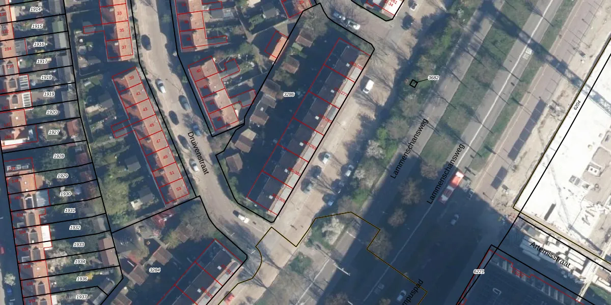 Het perceel waarop Lammenschansweg 293 staat heeft een oppervlakte van 1685 m². Dit is een zeer groot perceel. De perceeloppervlakte wordt geregistreerd door het Kadaster. Gedetailleerde informatie over de maten van dit perceel kunt u vinden in het rapport Kadastrale kaart met maatvoering van Lammenschansweg 293.