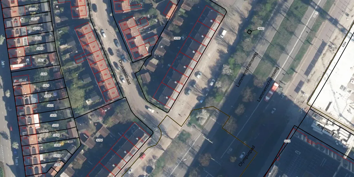 Het perceel waarop Lammenschansweg 301 staat heeft een oppervlakte van 1685 m². Dit is een zeer groot perceel. De perceeloppervlakte wordt geregistreerd door het Kadaster. Gedetailleerde informatie over de maten van dit perceel kunt u vinden in het rapport Kadastrale kaart met maatvoering van Lammenschansweg 301.