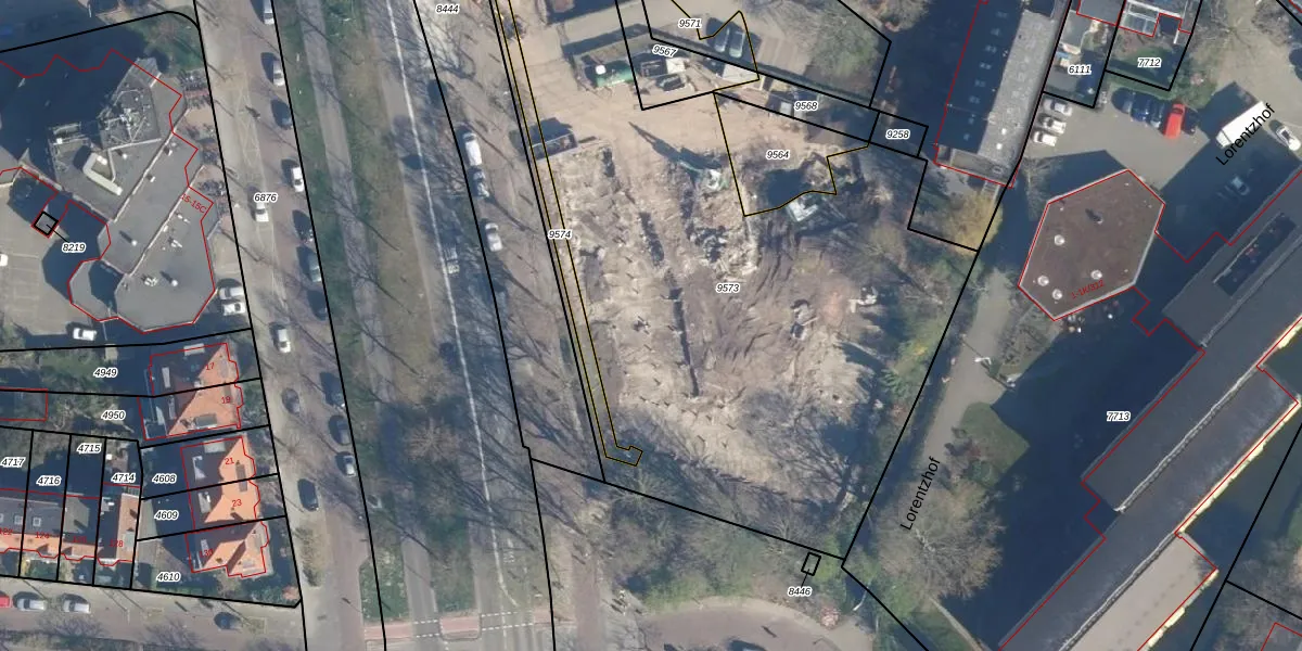 Het adres is gelegen op perceel 9573 in de sectie M en de kadastrale gemeente Leiden. De kadastrale aanduiding is aldus LDN01-M-9573. De oppervlakte van het perceel is 3426 m². Dat is groter dan gemiddeld in Leiden, waar de gemiddelde perceeloppervlakte op 704,9 m² ligt. Het kleinste perceel in de kadastrale gemeente is 0 m² groot. De grootste perceeloppervlakte is 51,8 ha. Op het perceel liggen in totaal 59 adressen. De huidige grenzen van het perceel zijn digitaal in de Basisregistratie Kadaster (BRK) geregistreerd op 16-12-2024.