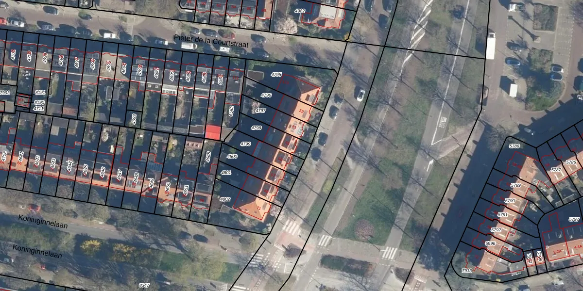 Het perceel waarop het adres ligt is LDN01-M-4798. De afkorting 'LDN01' staat voor kadastrale gemeente Leiden. Het perceel is 162 m² groot. Dat is kleiner dan de gemiddelde perceeloppervlakte in Leiden, dat op 704,9 m² ligt. De grootste perceeloppervlakte in de kadastrale gemeente is 51,8 ha. De kleinste oppervlakte bedraagt 0 m². Dit is het enige adres dat aanwezig is op het perceel. De huidige grenzen van het perceel zijn digitaal in de Basisregistratie Kadaster (BRK) geregistreerd op 28-08-2003.