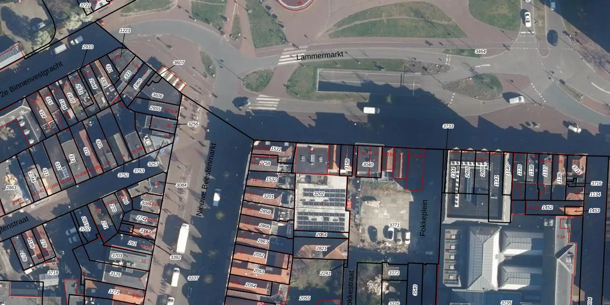 Het perceel waarop Lammermarkt 1 staat heeft een oppervlakte van 478 m². Dit is een groot perceel. De perceeloppervlakte wordt geregistreerd door het Kadaster. Gedetailleerde informatie over de maten van dit perceel kunt u vinden in het rapport Kadastrale kaart met maatvoering van Lammermarkt 1.