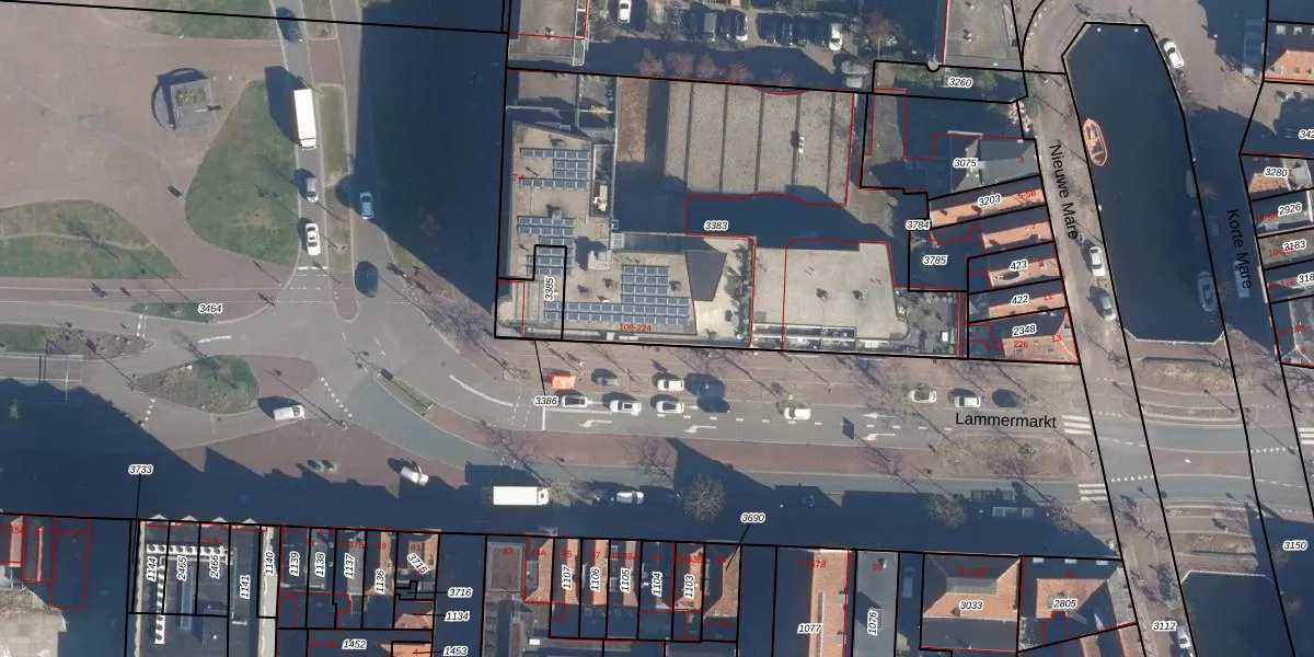 Het perceel waarop Lammermarkt 118 staat heeft een oppervlakte van 2377 m². Dit is een zeer groot perceel. De perceeloppervlakte wordt geregistreerd door het Kadaster. Gedetailleerde informatie over de maten van dit perceel kunt u vinden in het rapport Kadastrale kaart met maatvoering van Lammermarkt 118.