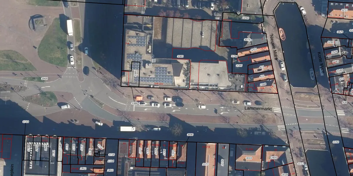 Het perceel waarop Lammermarkt 148 staat heeft een oppervlakte van 2377 m². Dit is een zeer groot perceel. De perceeloppervlakte wordt geregistreerd door het Kadaster. Gedetailleerde informatie over de maten van dit perceel kunt u vinden in het rapport Kadastrale kaart met maatvoering van Lammermarkt 148.