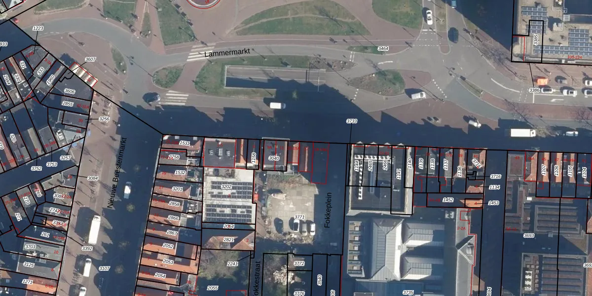 Het perceel waarop Lammermarkt 15-A staat heeft een oppervlakte van 1193 m². Dit is een zeer groot perceel. De perceeloppervlakte wordt geregistreerd door het Kadaster. Gedetailleerde informatie over de maten van dit perceel kunt u vinden in het rapport Kadastrale kaart met maatvoering van Lammermarkt 15-A.