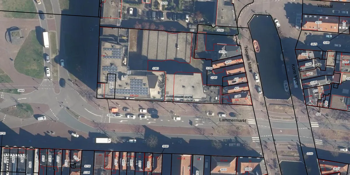 Het perceel waarop Lammermarkt 172 staat heeft een oppervlakte van 2377 m². Dit is een zeer groot perceel. De perceeloppervlakte wordt geregistreerd door het Kadaster. Gedetailleerde informatie over de maten van dit perceel kunt u vinden in het rapport Kadastrale kaart met maatvoering van Lammermarkt 172.