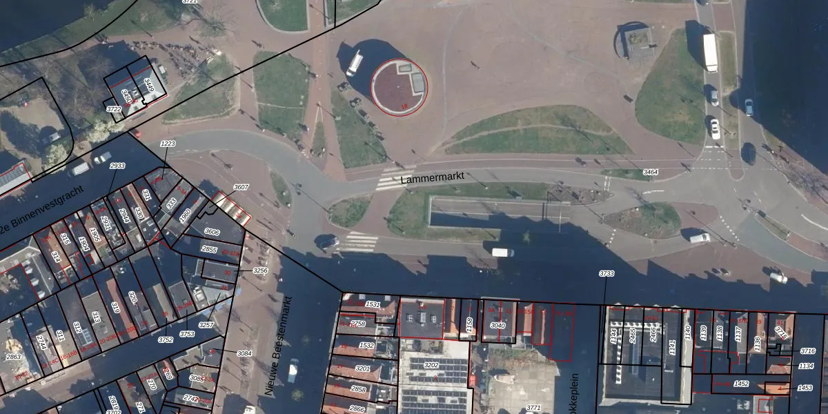 Het perceel waarop Lammermarkt 20-P staat heeft een oppervlakte van 1,4 ha. Dit is een zeer groot perceel. De perceeloppervlakte wordt geregistreerd door het Kadaster. Gedetailleerde informatie over de maten van dit perceel kunt u vinden in het rapport Kadastrale kaart met maatvoering van Lammermarkt 20-P.