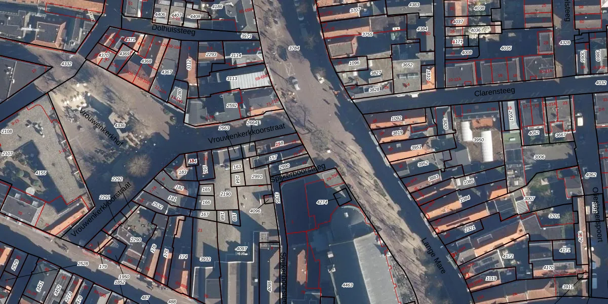 Het perceel waarop Lange Mare 75 staat heeft een oppervlakte van 61 m². Dit is een klein perceel. De perceeloppervlakte wordt geregistreerd door het Kadaster. Gedetailleerde informatie over de maten van dit perceel kunt u vinden in het rapport Kadastrale kaart met maatvoering van Lange Mare 75.