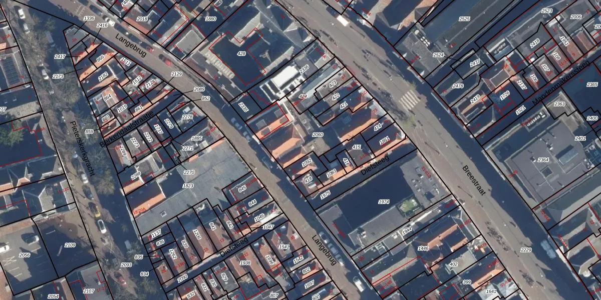 Langebrug 10-K is gelegen op kadastraal perceel LDN01G2060. Deze kadastrale aanduiding is uniek en wordt gebruikt door het Kadaster om eigendomsrechten en andere zakelijke rechten vast te leggen. Het perceel maakt onderdeel uit van de kadastrale gemeente Leiden.