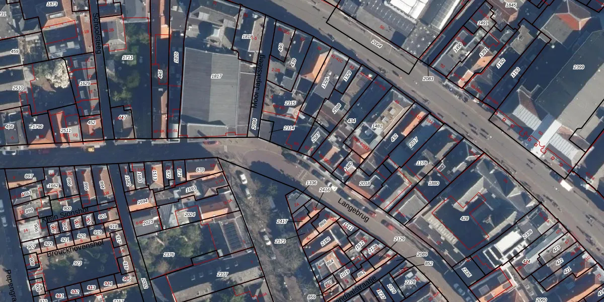 Langebrug 6-Z is gelegen op kadastraal perceel LDN01G2587. Deze kadastrale aanduiding is uniek en wordt gebruikt door het Kadaster om eigendomsrechten en andere zakelijke rechten vast te leggen. Het perceel maakt onderdeel uit van de kadastrale gemeente Leiden.