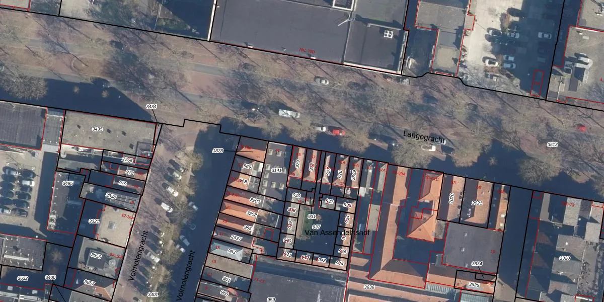 Het perceel waarop Langegracht 45 staat heeft een oppervlakte van 67 m². Dit is een klein perceel. De perceeloppervlakte wordt geregistreerd door het Kadaster. Gedetailleerde informatie over de maten van dit perceel kunt u vinden in het rapport Kadastrale kaart met maatvoering van Langegracht 45.