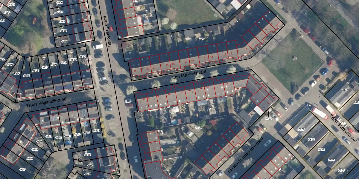 Het perceel waarop Lau Mazirelstraat 20 staat heeft een oppervlakte van 3775 m². Dit is een zeer groot perceel. De perceeloppervlakte wordt geregistreerd door het Kadaster. Gedetailleerde informatie over de maten van dit perceel kunt u vinden in het rapport Kadastrale kaart met maatvoering van Lau Mazirelstraat 20.