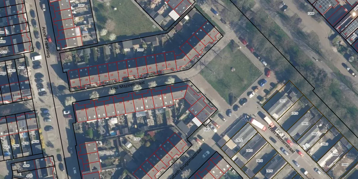 Lau Mazirelstraat 8 is gelegen op kadastraal perceel LDN01W7100. Deze kadastrale aanduiding is uniek en wordt gebruikt door het Kadaster om eigendomsrechten en andere zakelijke rechten vast te leggen. Het perceel maakt onderdeel uit van de kadastrale gemeente Leiden.