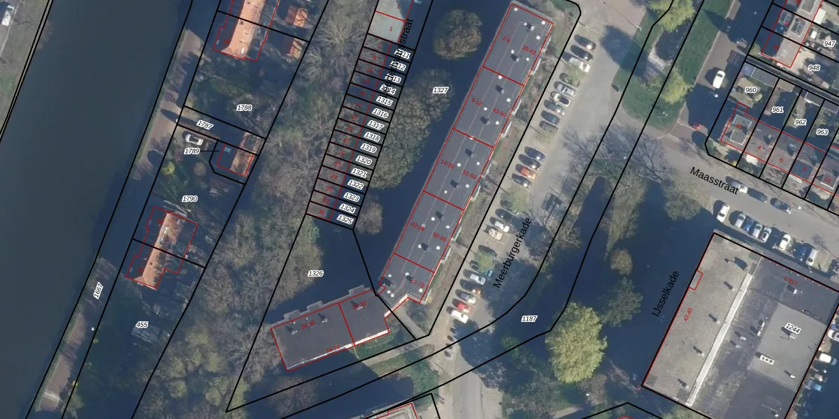 Het adres ligt op het perceel LDN01-Q-1327, dat zich in de kadastrale gemeente Leiden bevindt. Het perceel is met 2468 m² relatief groot. Het gemiddelde ligt in de kadastrale gemeente Leiden op 703,94 m². De grootste perceeloppervlakte in de kadastrale gemeente is 51,8 ha. De kleinste oppervlakte bedraagt 0 m². Op het perceel zijn 50 adressen aanwezig. In de Basisregistratie Kadaster (BRK) werden de grenzen van het perceel geregistreerd op 27-08-2003.