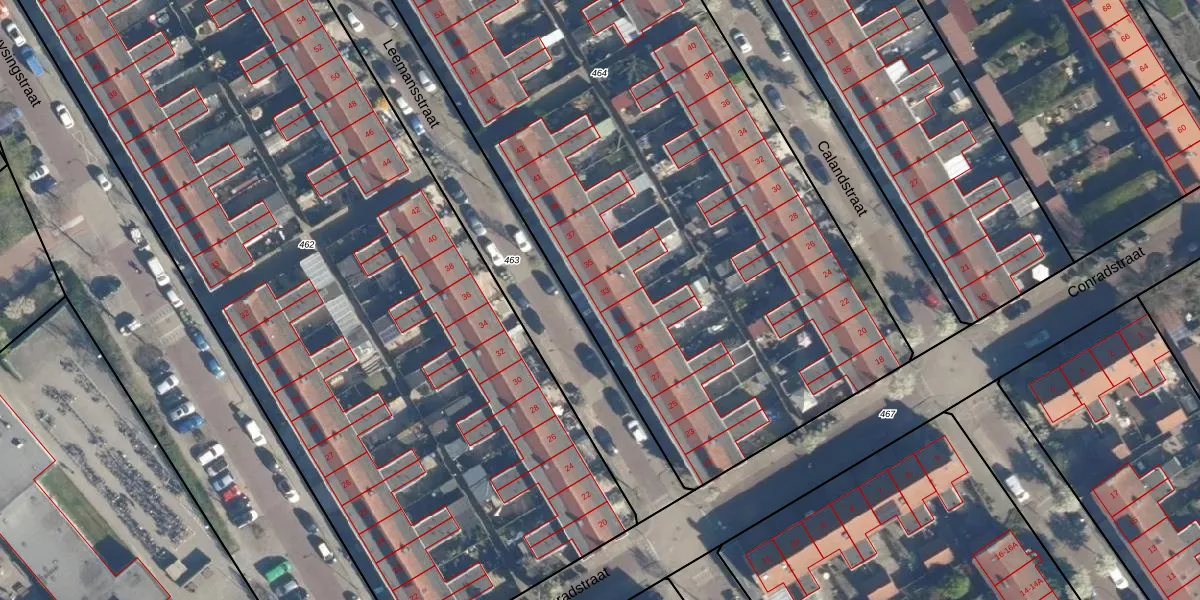 Leemansstraat 33 is gelegen op kadastraal perceel LDN01R464. Deze kadastrale aanduiding is uniek en wordt gebruikt door het Kadaster om eigendomsrechten en andere zakelijke rechten vast te leggen. Het perceel maakt onderdeel uit van de kadastrale gemeente Leiden.
