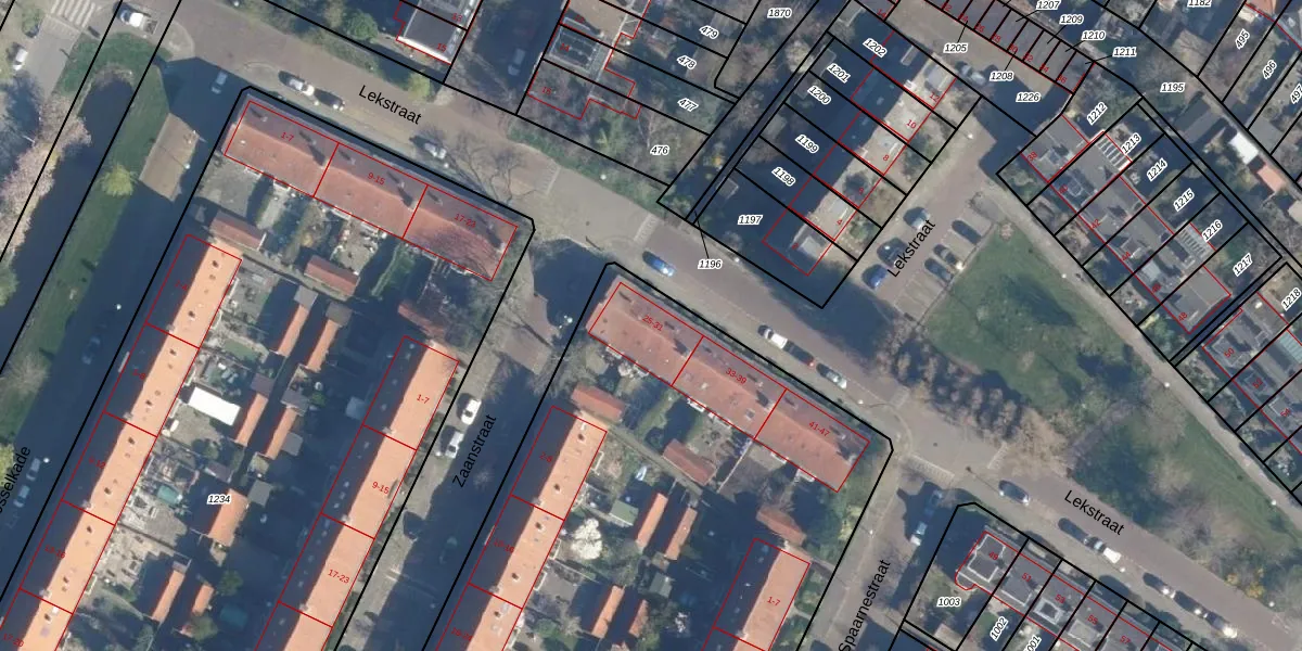 Het perceel waarop Lekstraat 31 staat heeft een oppervlakte van 4715 m². Dit is een zeer groot perceel. De perceeloppervlakte wordt geregistreerd door het Kadaster. Gedetailleerde informatie over de maten van dit perceel kunt u vinden in het rapport Kadastrale kaart met maatvoering van Lekstraat 31.