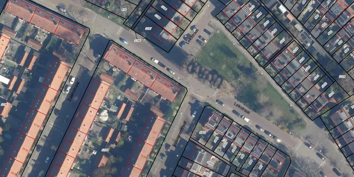 Lekstraat 45 is gelegen op kadastraal perceel LDN01Q1235. Deze kadastrale aanduiding is uniek en wordt gebruikt door het Kadaster om eigendomsrechten en andere zakelijke rechten vast te leggen. Het perceel maakt onderdeel uit van de kadastrale gemeente Leiden.