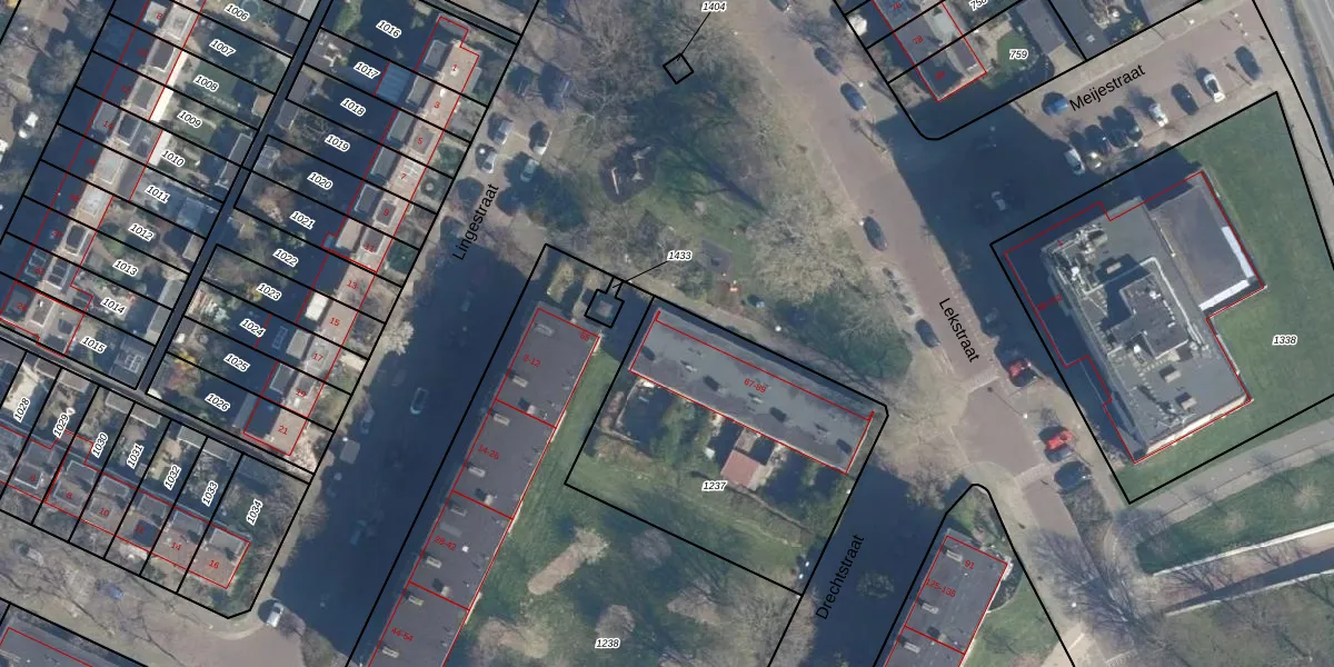 Lekstraat 67 is gelegen op kadastraal perceel LDN01Q1237. Deze kadastrale aanduiding is uniek en wordt gebruikt door het Kadaster om eigendomsrechten en andere zakelijke rechten vast te leggen. Het perceel maakt onderdeel uit van de kadastrale gemeente Leiden.