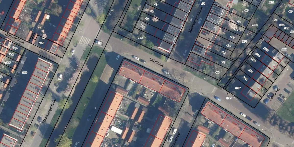 Lekstraat 9 is gelegen op kadastraal perceel LDN01Q1234. Deze kadastrale aanduiding is uniek en wordt gebruikt door het Kadaster om eigendomsrechten en andere zakelijke rechten vast te leggen. Het perceel maakt onderdeel uit van de kadastrale gemeente Leiden.