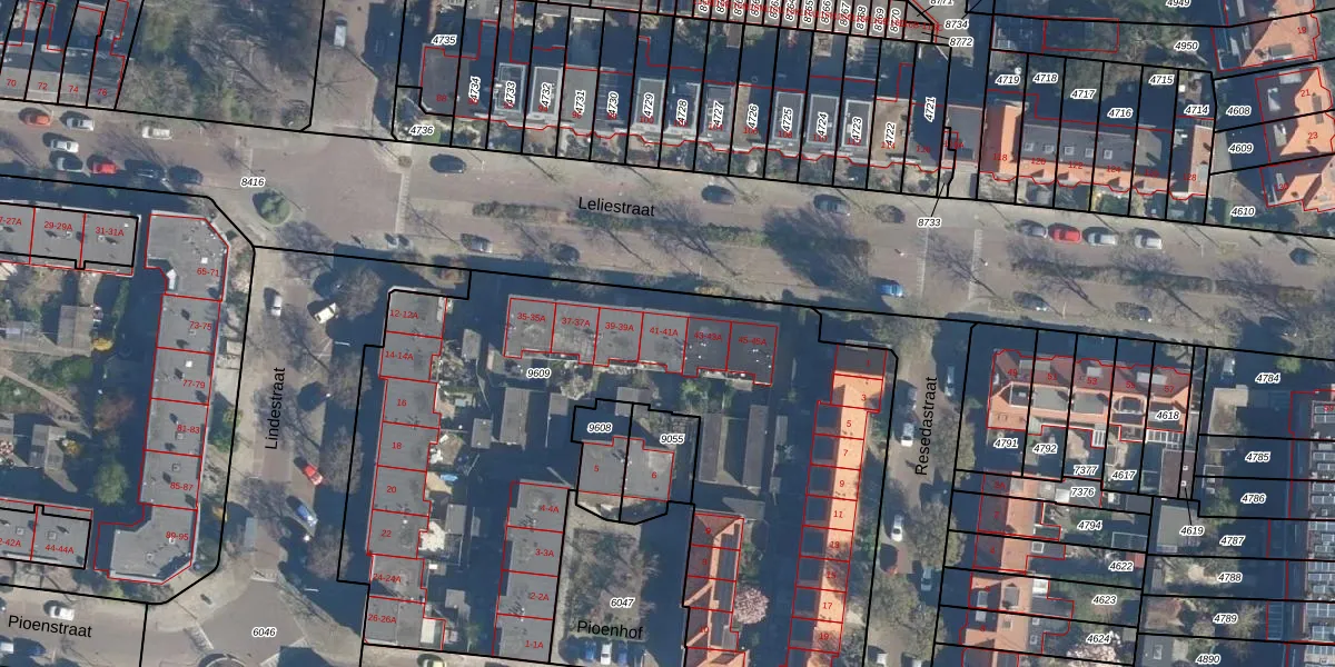 Leliestraat 41-A is gelegen op kadastraal perceel LDN01M9609. Deze kadastrale aanduiding is uniek en wordt gebruikt door het Kadaster om eigendomsrechten en andere zakelijke rechten vast te leggen. Het perceel maakt onderdeel uit van de kadastrale gemeente Leiden.