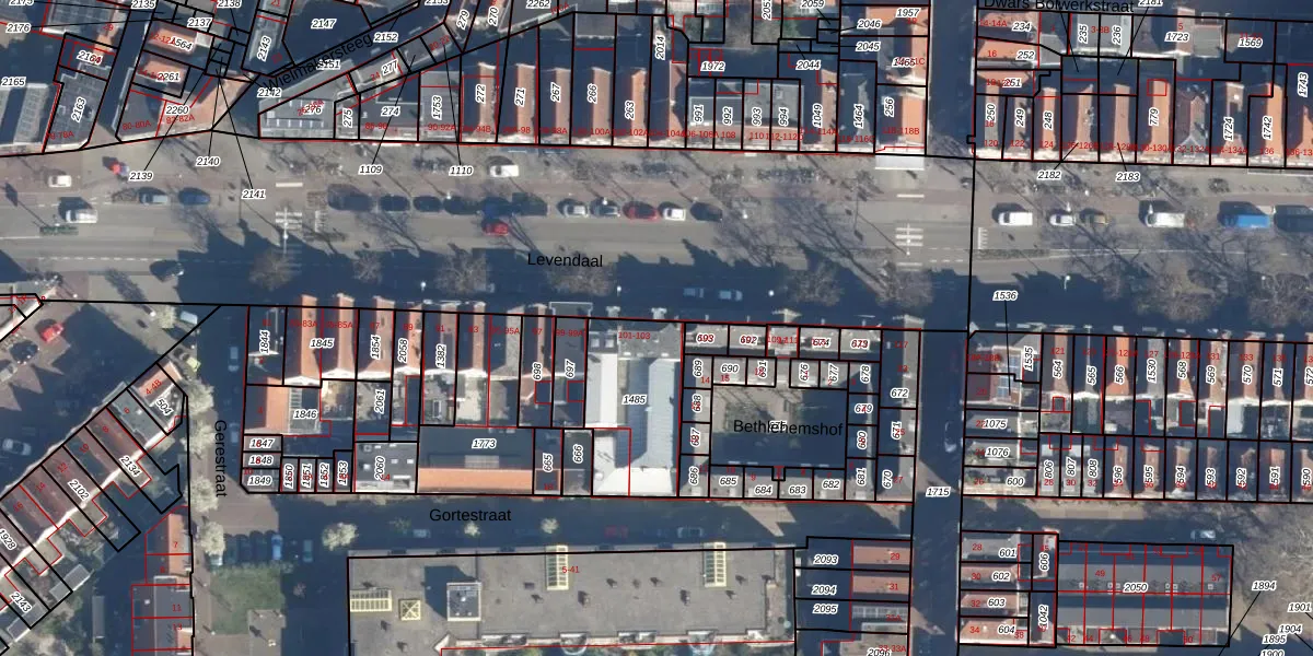 Het perceel waarop Levendaal 103 staat heeft een oppervlakte van 375 m². Dit is een groot perceel. De perceeloppervlakte wordt geregistreerd door het Kadaster. Gedetailleerde informatie over de maten van dit perceel kunt u vinden in het rapport Kadastrale kaart met maatvoering van Levendaal 103.