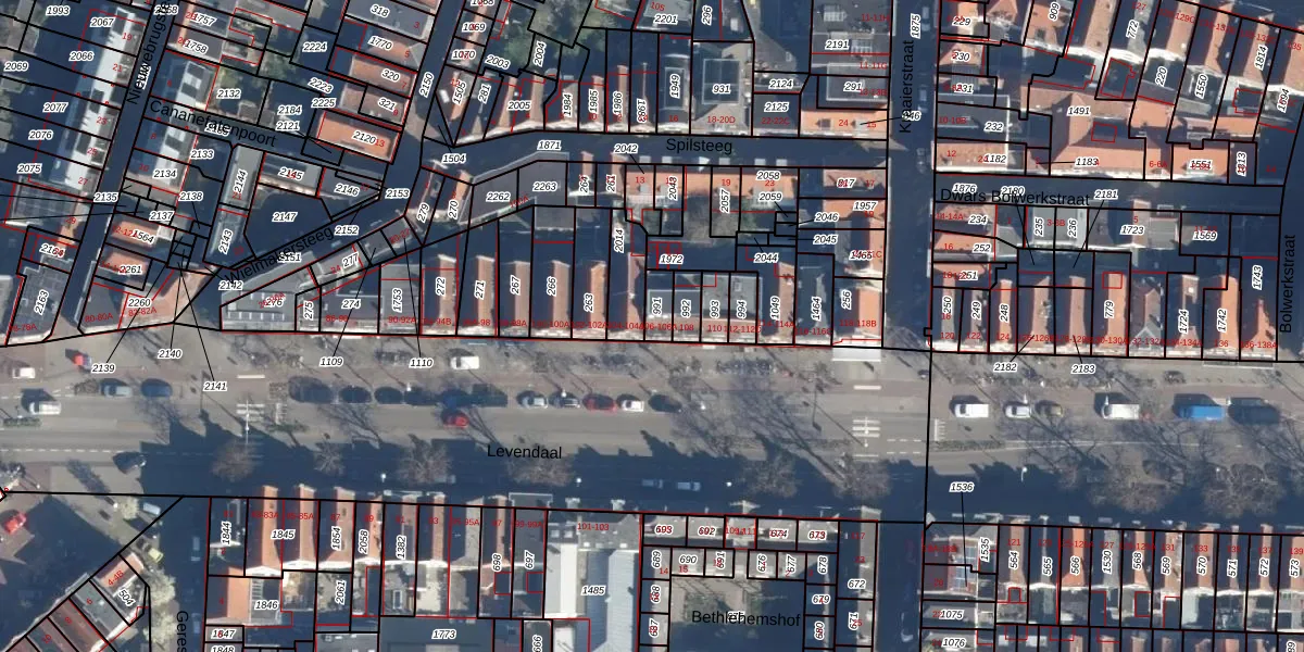 Het perceel waarop Levendaal 106-A staat heeft een oppervlakte van 47 m². Dit is een klein perceel. De perceeloppervlakte wordt geregistreerd door het Kadaster. Gedetailleerde informatie over de maten van dit perceel kunt u vinden in het rapport Kadastrale kaart met maatvoering van Levendaal 106-A.
