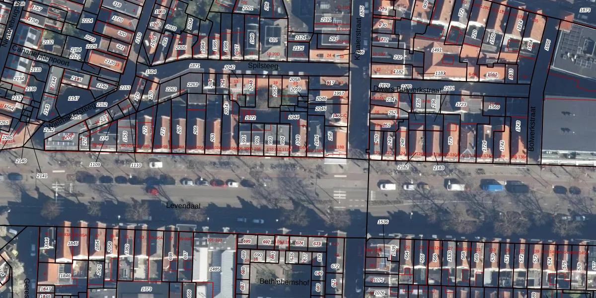 Levendaal 114 is gelegen op kadastraal perceel LDN01D1049. Deze kadastrale aanduiding is uniek en wordt gebruikt door het Kadaster om eigendomsrechten en andere zakelijke rechten vast te leggen. Het perceel maakt onderdeel uit van de kadastrale gemeente Leiden.