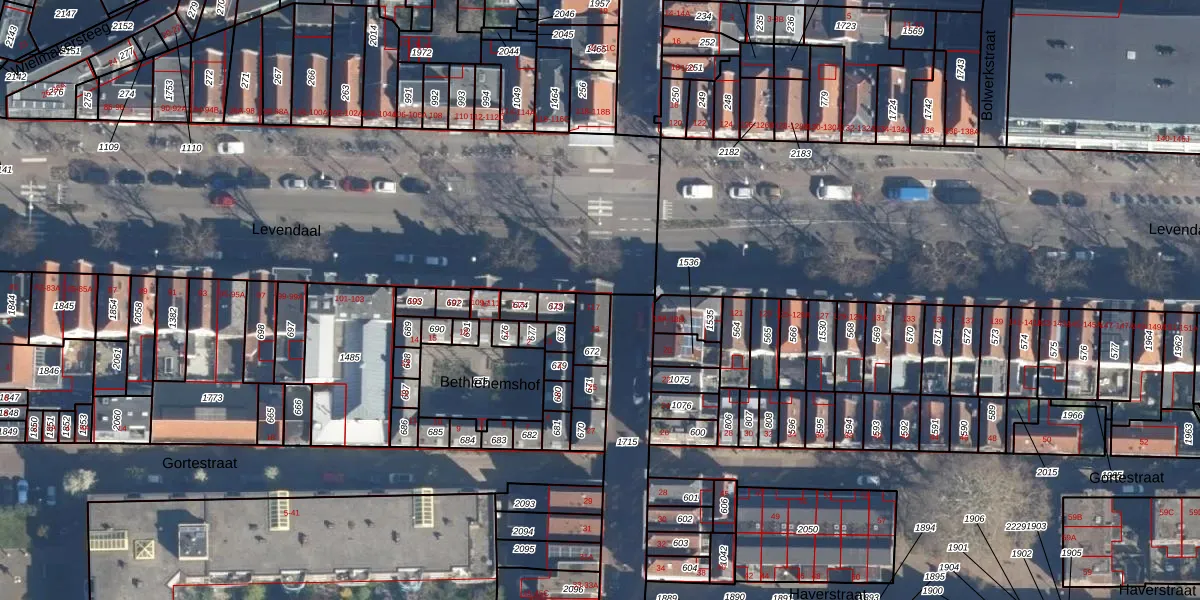 Het perceel waarop Levendaal 117 staat heeft een oppervlakte van 68 m². Dit is een klein perceel. De perceeloppervlakte wordt geregistreerd door het Kadaster. Gedetailleerde informatie over de maten van dit perceel kunt u vinden in het rapport Kadastrale kaart met maatvoering van Levendaal 117.