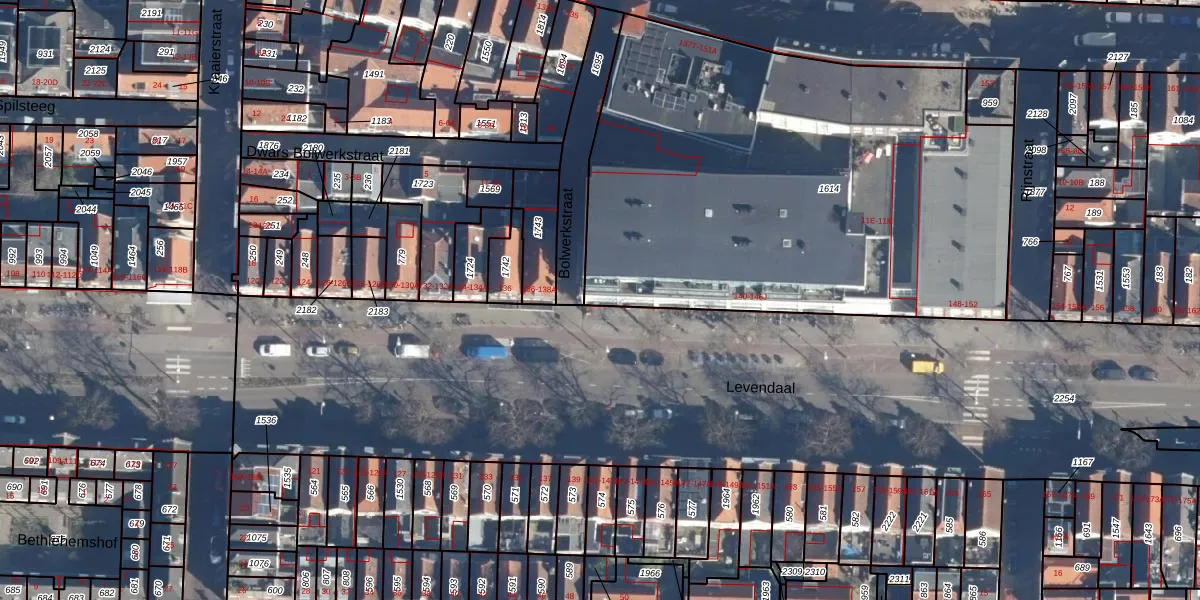 Levendaal 140 is gelegen op kadastraal perceel LDN01D1614. Deze kadastrale aanduiding is uniek en wordt gebruikt door het Kadaster om eigendomsrechten en andere zakelijke rechten vast te leggen. Het perceel maakt onderdeel uit van de kadastrale gemeente Leiden.