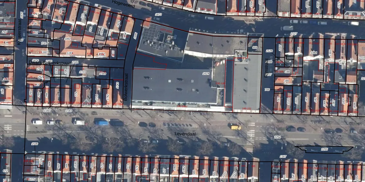 Levendaal 142-B is gelegen op kadastraal perceel LDN01D1614. Deze kadastrale aanduiding is uniek en wordt gebruikt door het Kadaster om eigendomsrechten en andere zakelijke rechten vast te leggen. Het perceel maakt onderdeel uit van de kadastrale gemeente Leiden.