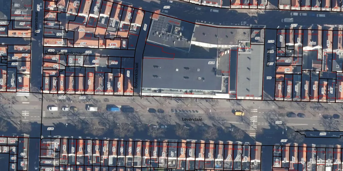 Het perceel waarop Levendaal 146-F staat heeft een oppervlakte van 2944 m². Dit is een zeer groot perceel. De perceeloppervlakte wordt geregistreerd door het Kadaster. Gedetailleerde informatie over de maten van dit perceel kunt u vinden in het rapport Kadastrale kaart met maatvoering van Levendaal 146-F.