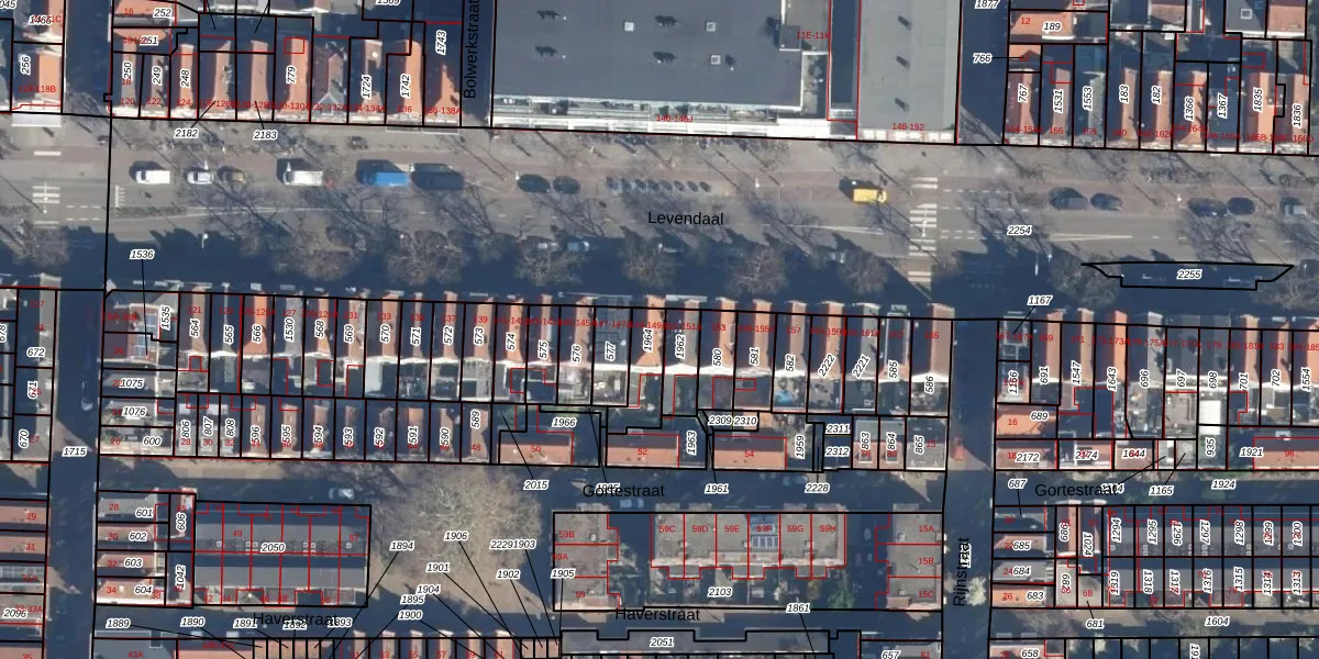 Het perceel waarop Levendaal 149-A staat heeft een oppervlakte van 107 m². Dit is een middelgroot perceel. De perceeloppervlakte wordt geregistreerd door het Kadaster. Gedetailleerde informatie over de maten van dit perceel kunt u vinden in het rapport Kadastrale kaart met maatvoering van Levendaal 149-A.