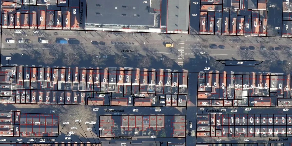 Levendaal 155 is gelegen op kadastraal perceel LDN01D581. Deze kadastrale aanduiding is uniek en wordt gebruikt door het Kadaster om eigendomsrechten en andere zakelijke rechten vast te leggen. Het perceel maakt onderdeel uit van de kadastrale gemeente Leiden.