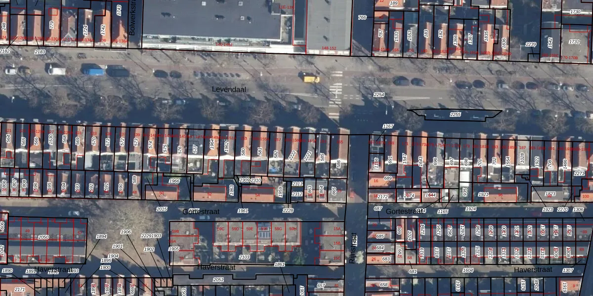 Het perceel waarop Levendaal 159 staat heeft een oppervlakte van 80 m². Dit is een klein perceel. De perceeloppervlakte wordt geregistreerd door het Kadaster. Gedetailleerde informatie over de maten van dit perceel kunt u vinden in het rapport Kadastrale kaart met maatvoering van Levendaal 159.