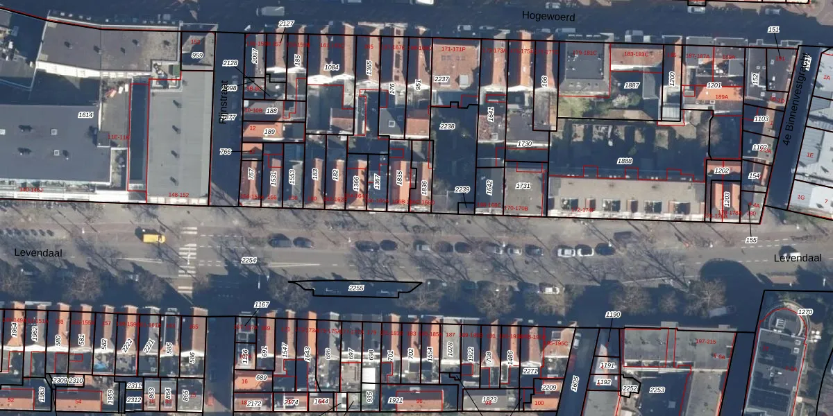 Levendaal 166-C is gelegen op kadastraal perceel LDN01D1836. Deze kadastrale aanduiding is uniek en wordt gebruikt door het Kadaster om eigendomsrechten en andere zakelijke rechten vast te leggen. Het perceel maakt onderdeel uit van de kadastrale gemeente Leiden.