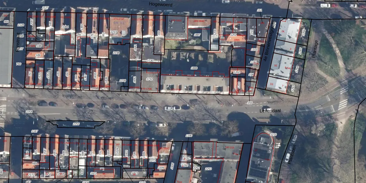 Levendaal 172-B is gelegen op kadastraal perceel LDN01D1888. Deze kadastrale aanduiding is uniek en wordt gebruikt door het Kadaster om eigendomsrechten en andere zakelijke rechten vast te leggen. Het perceel maakt onderdeel uit van de kadastrale gemeente Leiden.