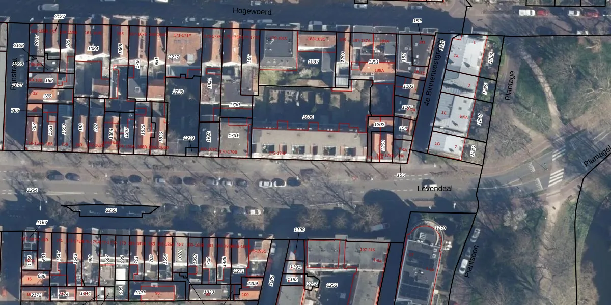 Levendaal 174-C is gelegen op kadastraal perceel LDN01D1888. Deze kadastrale aanduiding is uniek en wordt gebruikt door het Kadaster om eigendomsrechten en andere zakelijke rechten vast te leggen. Het perceel maakt onderdeel uit van de kadastrale gemeente Leiden.