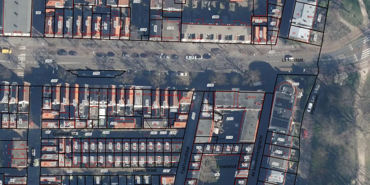 Levendaal 195 is gelegen op kadastraal perceel LDN01D2271. Deze kadastrale aanduiding is uniek en wordt gebruikt door het Kadaster om eigendomsrechten en andere zakelijke rechten vast te leggen. Het perceel maakt onderdeel uit van de kadastrale gemeente Leiden.
