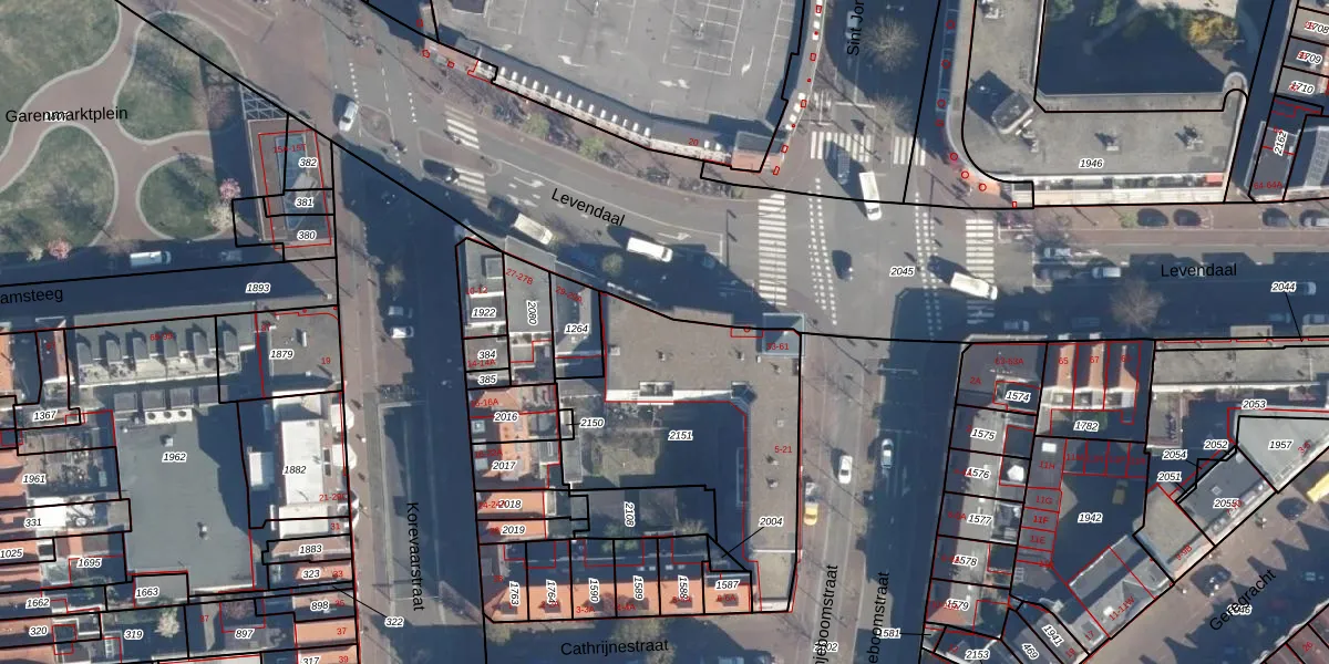 Levendaal 47 is gelegen op kadastraal perceel LDN01E2151. Deze kadastrale aanduiding is uniek en wordt gebruikt door het Kadaster om eigendomsrechten en andere zakelijke rechten vast te leggen. Het perceel maakt onderdeel uit van de kadastrale gemeente Leiden.