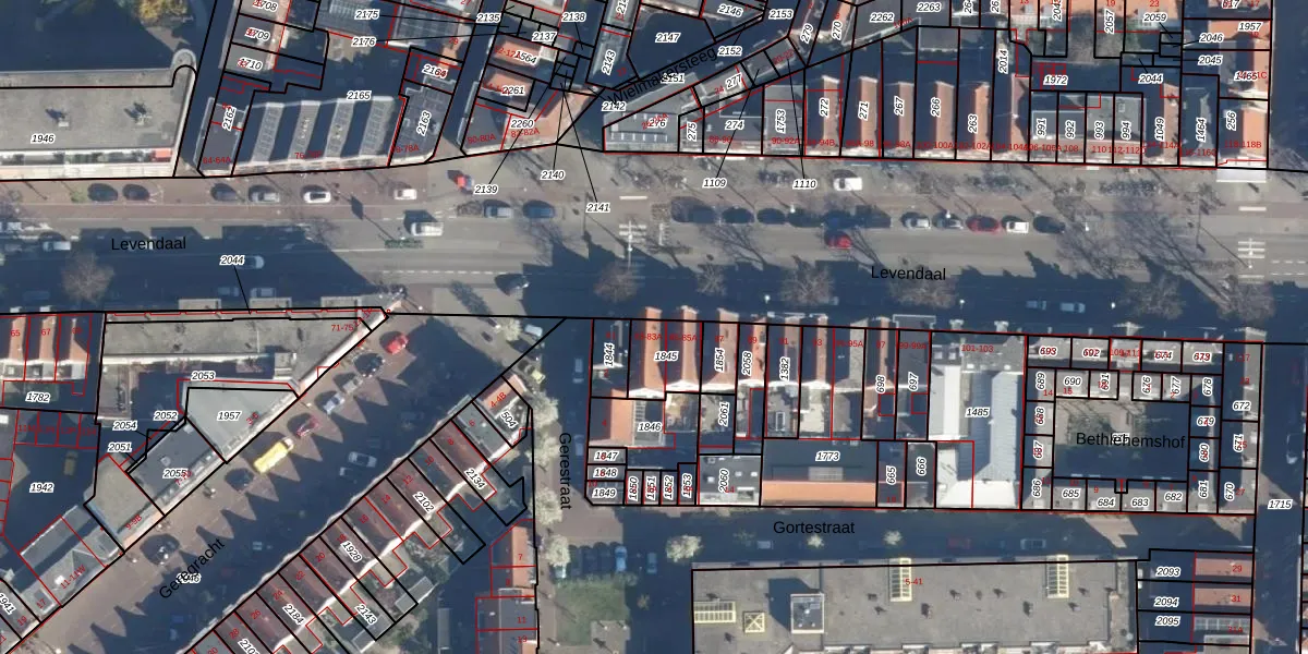 Het perceel waarop Levendaal 83 staat heeft een oppervlakte van 115 m². Dit is een middelgroot perceel. De perceeloppervlakte wordt geregistreerd door het Kadaster. Gedetailleerde informatie over de maten van dit perceel kunt u vinden in het rapport Kadastrale kaart met maatvoering van Levendaal 83.