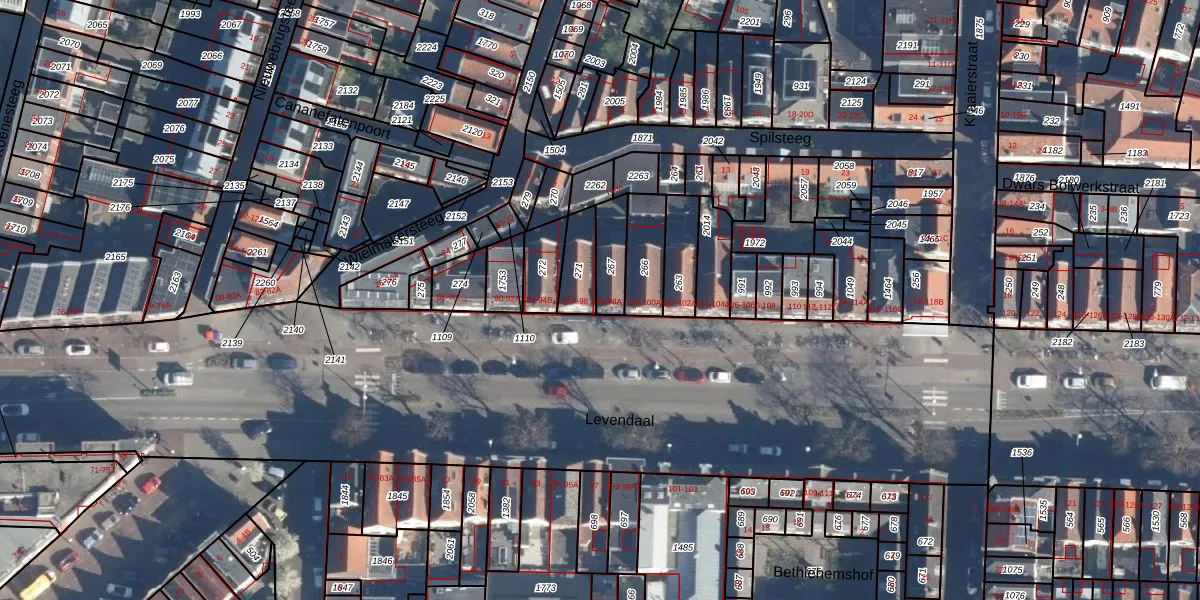 Het perceel waarop Levendaal 98-A staat heeft een oppervlakte van 105 m². Dit is een middelgroot perceel. De perceeloppervlakte wordt geregistreerd door het Kadaster. Gedetailleerde informatie over de maten van dit perceel kunt u vinden in het rapport Kadastrale kaart met maatvoering van Levendaal 98-A.