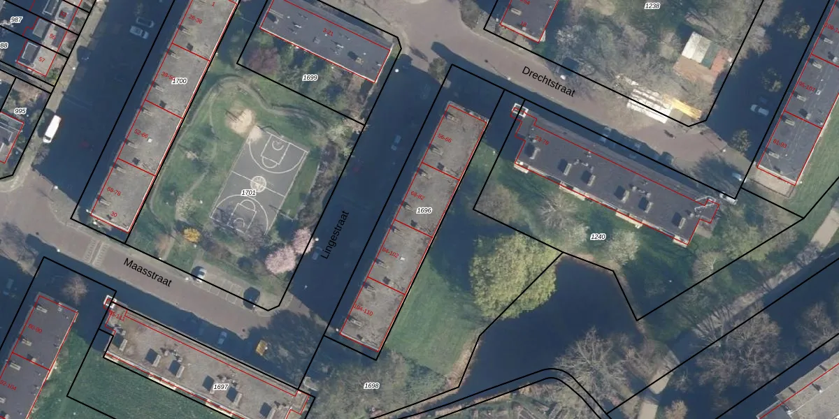 Het perceel waarop Lingestraat 76 staat heeft een oppervlakte van 995 m². Dit is een groot perceel. De perceeloppervlakte wordt geregistreerd door het Kadaster. Gedetailleerde informatie over de maten van dit perceel kunt u vinden in het rapport Kadastrale kaart met maatvoering van Lingestraat 76.