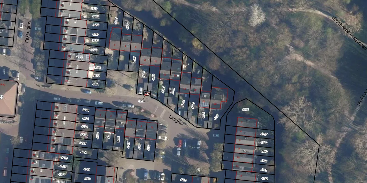 Lintgras 16 is gelegen op kadastraal perceel LDN01S4702. Deze kadastrale aanduiding is uniek en wordt gebruikt door het Kadaster om eigendomsrechten en andere zakelijke rechten vast te leggen. Het perceel maakt onderdeel uit van de kadastrale gemeente Leiden.