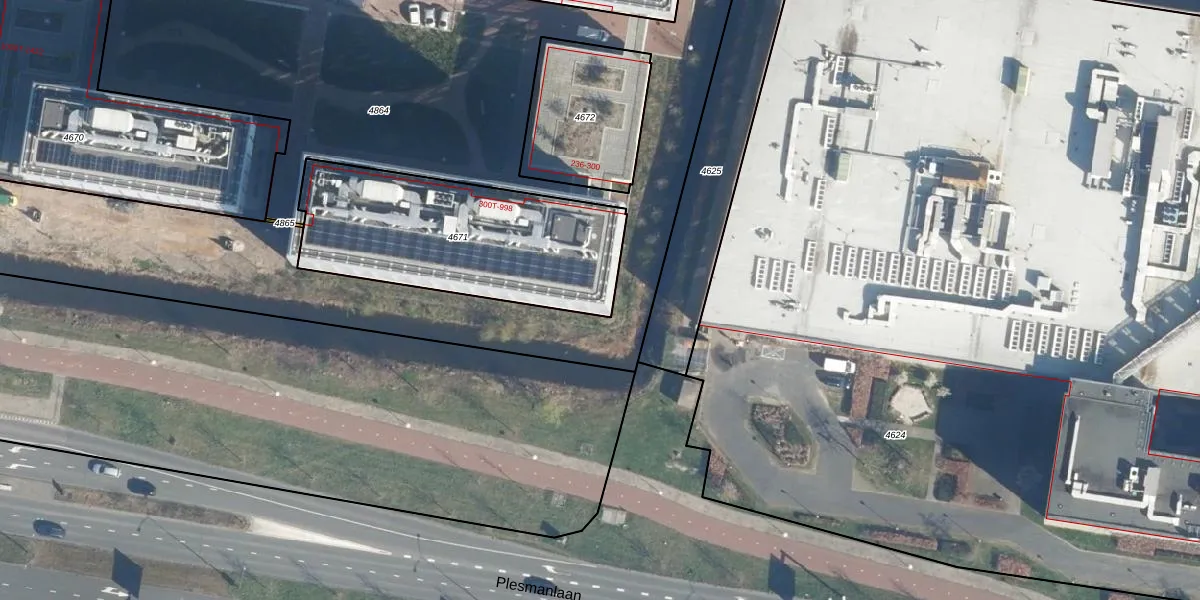 Het perceel waarop het adres ligt is LDN01-X-4671. De afkorting 'LDN01' staat voor kadastrale gemeente Leiden. Het perceel is met 979 m² relatief groot. Het gemiddelde ligt in de kadastrale gemeente Leiden op 703,94 m². Het kleinste perceel in de kadastrale gemeente is 0 m² groot. De grootste perceeloppervlakte is 51,8 ha. Er zijn 350 adressen aanwezig op het perceel. De huidige grenzen van het perceel zijn digitaal in de Basisregistratie Kadaster (BRK) geregistreerd op 28-08-2025.