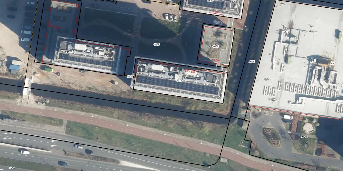 Het perceel waarop het adres ligt is LDN01-X-4671. De afkorting 'LDN01' staat voor kadastrale gemeente Leiden. Het perceel is met 979 m² relatief groot. Het gemiddelde ligt in de kadastrale gemeente Leiden op 703,94 m². Het kleinste perceel in de kadastrale gemeente is 0 m² groot. De grootste perceeloppervlakte is 51,8 ha. Op het perceel zijn 350 adressen aanwezig. De huidige grenzen van het perceel zijn digitaal in de Basisregistratie Kadaster (BRK) geregistreerd op 28-08-2025.