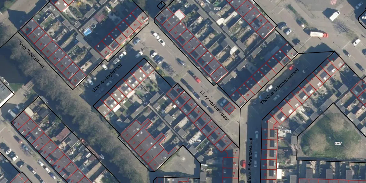 Lizzy Ansinghstraat 16 is gelegen op kadastraal perceel LDN01W6462. Deze kadastrale aanduiding is uniek en wordt gebruikt door het Kadaster om eigendomsrechten en andere zakelijke rechten vast te leggen. Het perceel maakt onderdeel uit van de kadastrale gemeente Leiden.