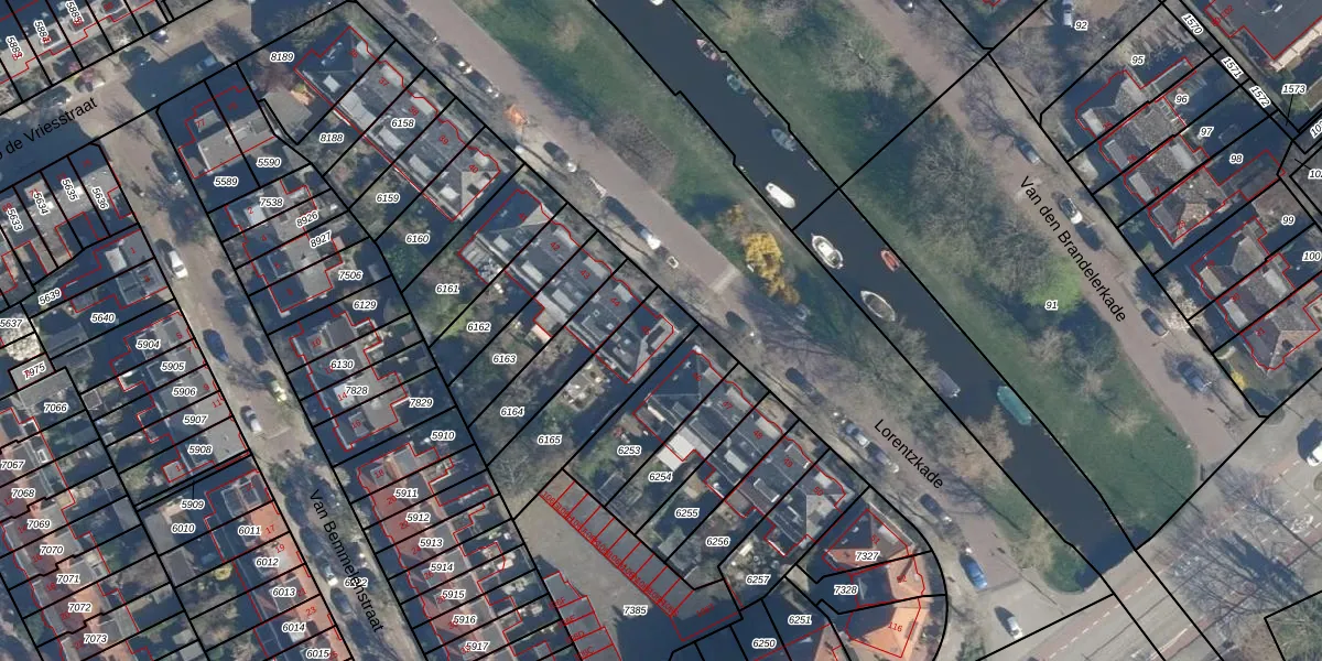 Lorentzkade 45 is gelegen op kadastraal perceel LDN01M6165. Deze kadastrale aanduiding is uniek en wordt gebruikt door het Kadaster om eigendomsrechten en andere zakelijke rechten vast te leggen. Het perceel maakt onderdeel uit van de kadastrale gemeente Leiden.
