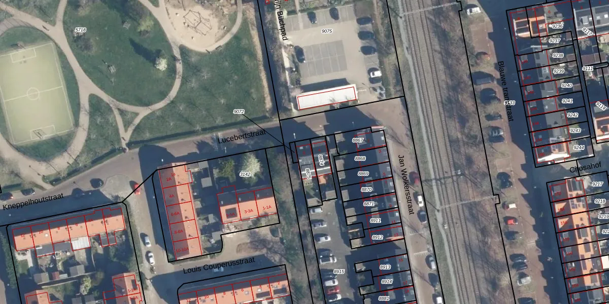 Gebruik de zoekbalk of klik op een perceel voor informatie over de adressen binnen dit perceel.