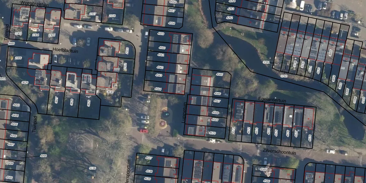 Gebruik de zoekbalk of klik op een perceel voor informatie over de adressen binnen dit perceel.