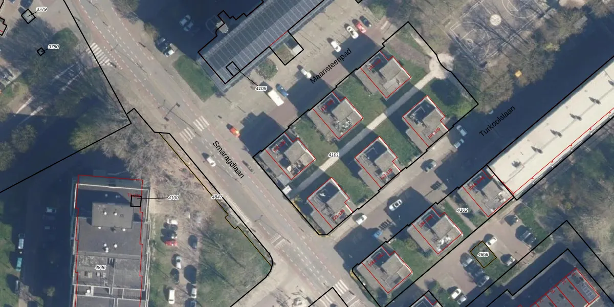 Het adres is gelegen op perceel 4101 in de sectie X en de kadastrale gemeente Leiden. De kadastrale aanduiding is aldus LDN01-X-4101. Het perceel is met 2320 m² relatief groot. Het gemiddelde ligt in de kadastrale gemeente Leiden op 703,94 m². De grootste perceeloppervlakte in de kadastrale gemeente is 51,8 ha. De kleinste oppervlakte bedraagt 0 m². Op het perceel zijn 30 adressen aanwezig. De huidige grenzen van het perceel zijn digitaal in de Basisregistratie Kadaster (BRK) geregistreerd op 22-11-2007.